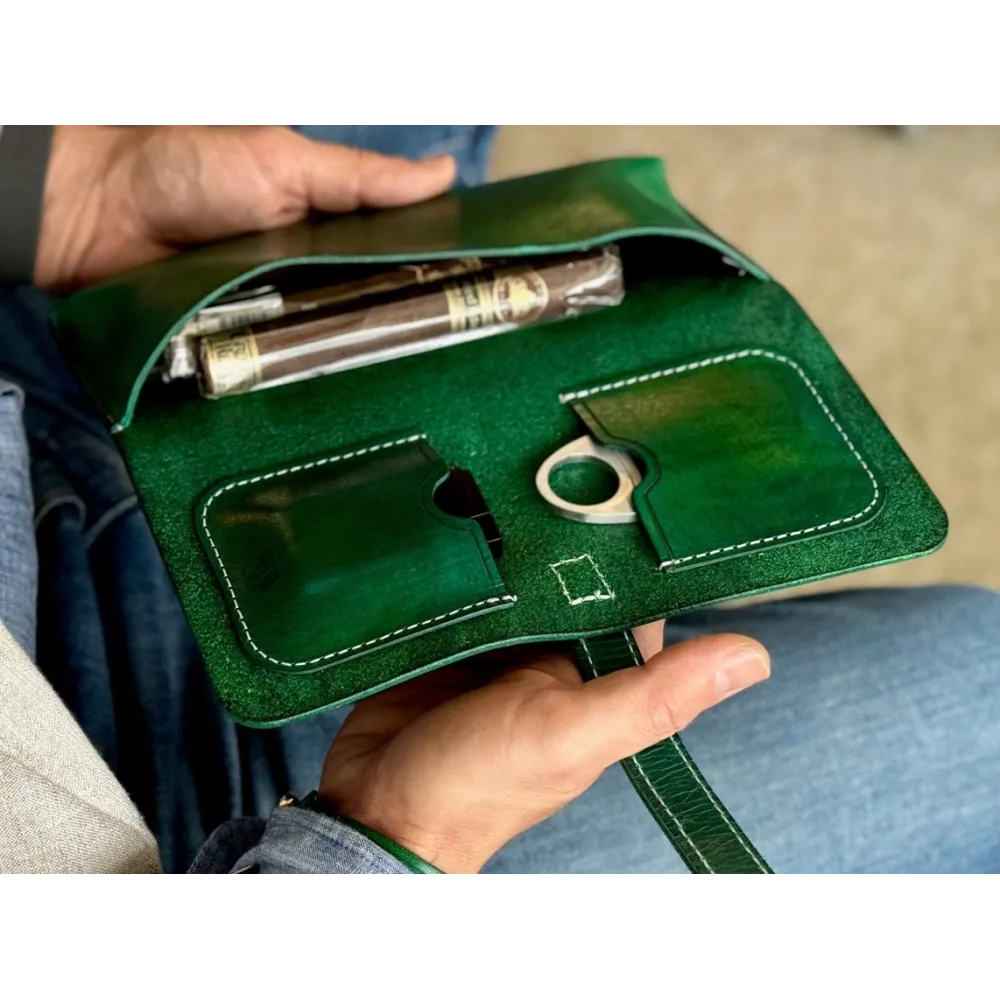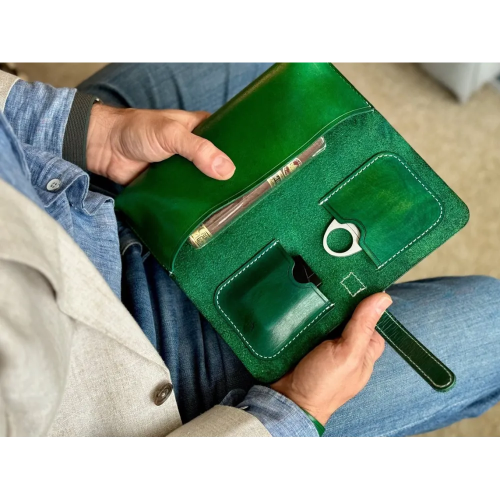 4 Cigars Green Hand-Dyed Leather Cigar Case