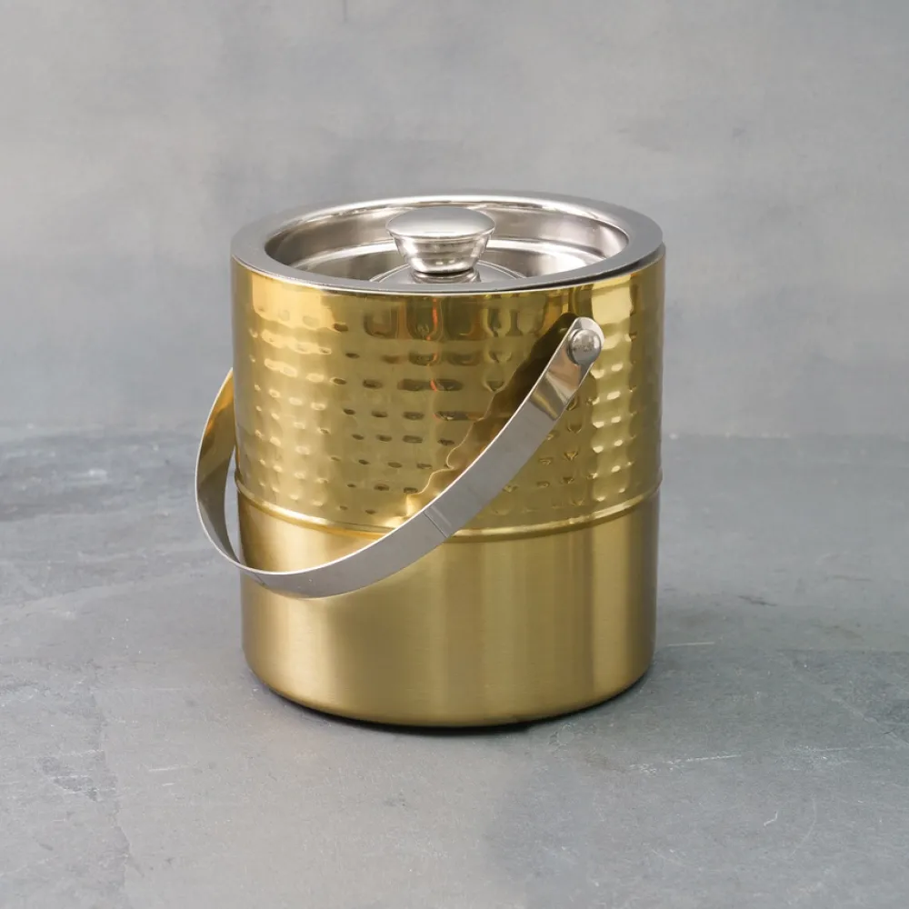 Gold Barware Set, Set of 6 | (1) Medium Tub, (1) Small Tub, (1) Ice Bucket, (1) Cocktail Shaker, & (2) Ice Scoops
