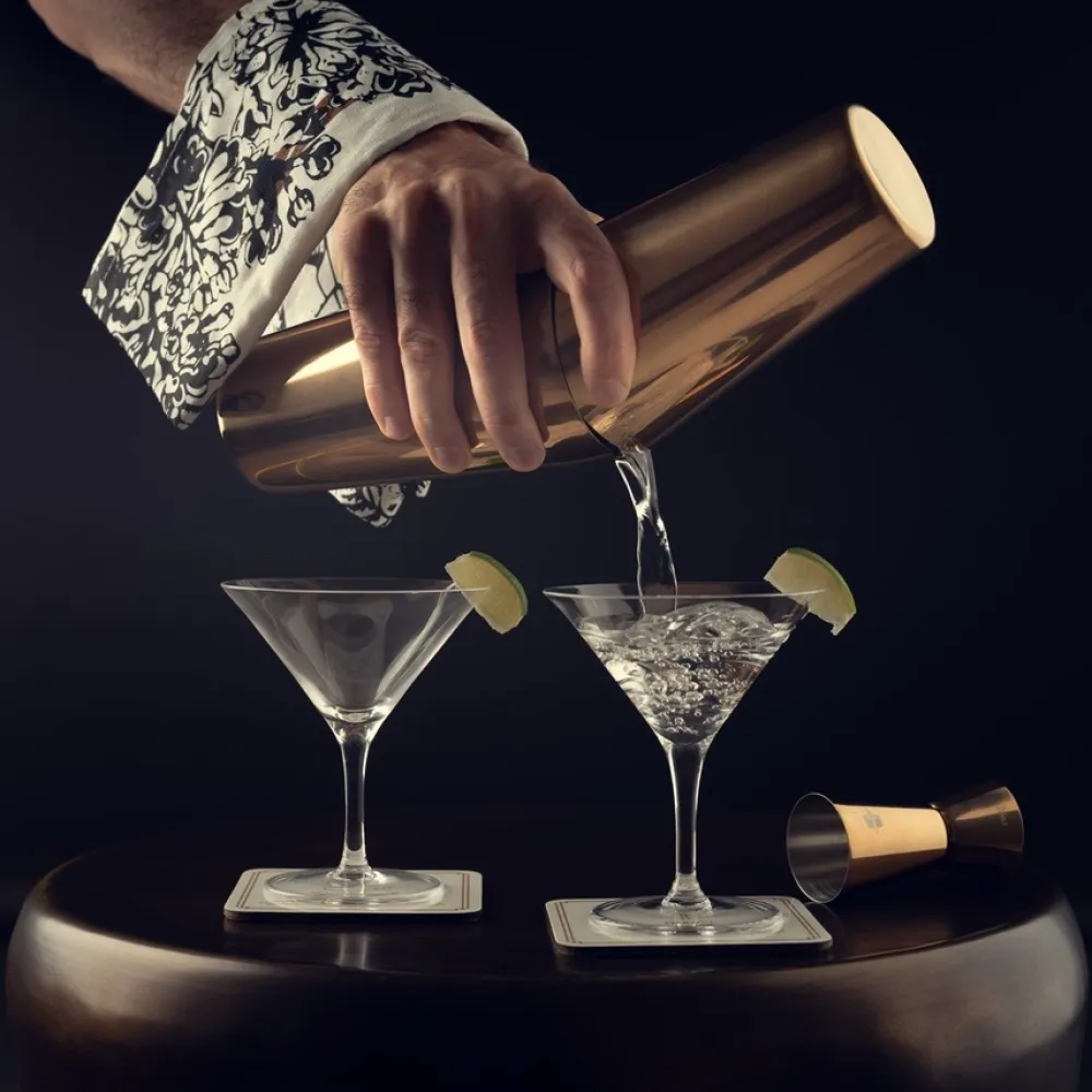 The set includes everything you need to create your cocktail of choice. Measure out the perfect quantities with a jigger and pourer, release the flavours of your ingredients as you crush them with the muddler, while the Hawthorn Strainer makes sure only the cocktail ends up in the glass.