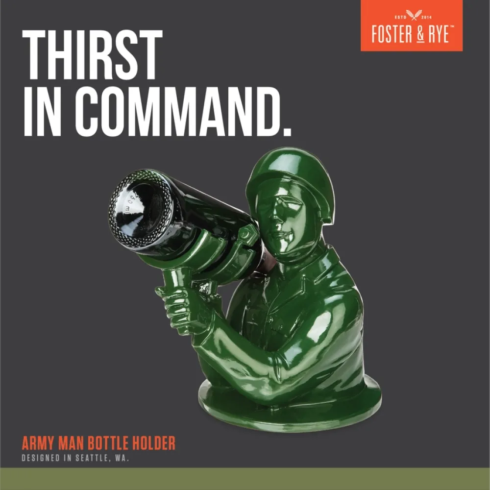 Send out an S.O.S, this party needs wine. At ease soldier, you've always got some on hand with this army man bottle holder.