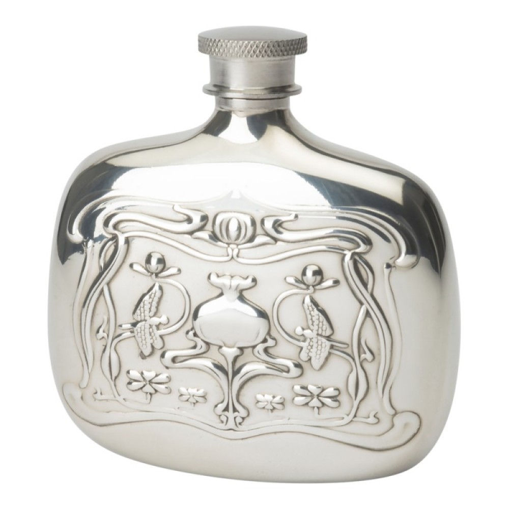 Your flask, crafted from English pewter, is a testament to the Art Nouveau style.
