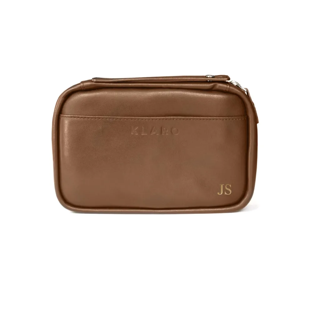 The Flint brown Italian leather cigar travel case is on a level of its own, incorporating top-notch materials with a more thoughtful layout. We achieved a traditional leather soft-good design that effectively protects your cigars when traveling by adding a custom-engineered (patent-pending) protective plastic hard-shell that inconspicuously sits inside a nylon sleeve. Other details like the elongated magnet pockets that allow various sizes of accessories to fit comfortably, the interior leather piping and leather accents, the custom polished gunmetal zipper, and the high-quality materials were all meticulously chosen and designed.
