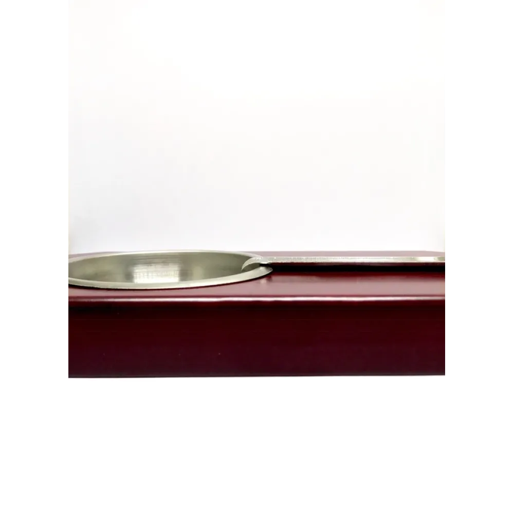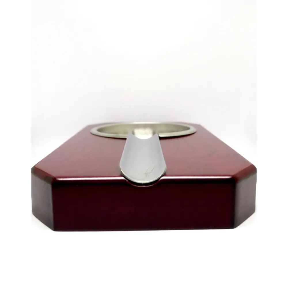 Stainless steel ashtray inlaid into a rosewood base with a highly polished chrome-plated cigar holder.