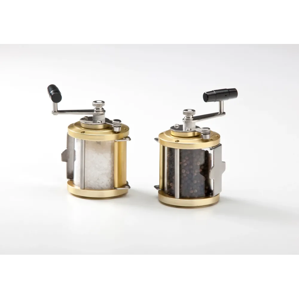 Made of hard anodized aluminum and marine grade stainless steel and featuring a state of the art ceramic grinding mechanism that allows for perfectly ground salt and pepper.