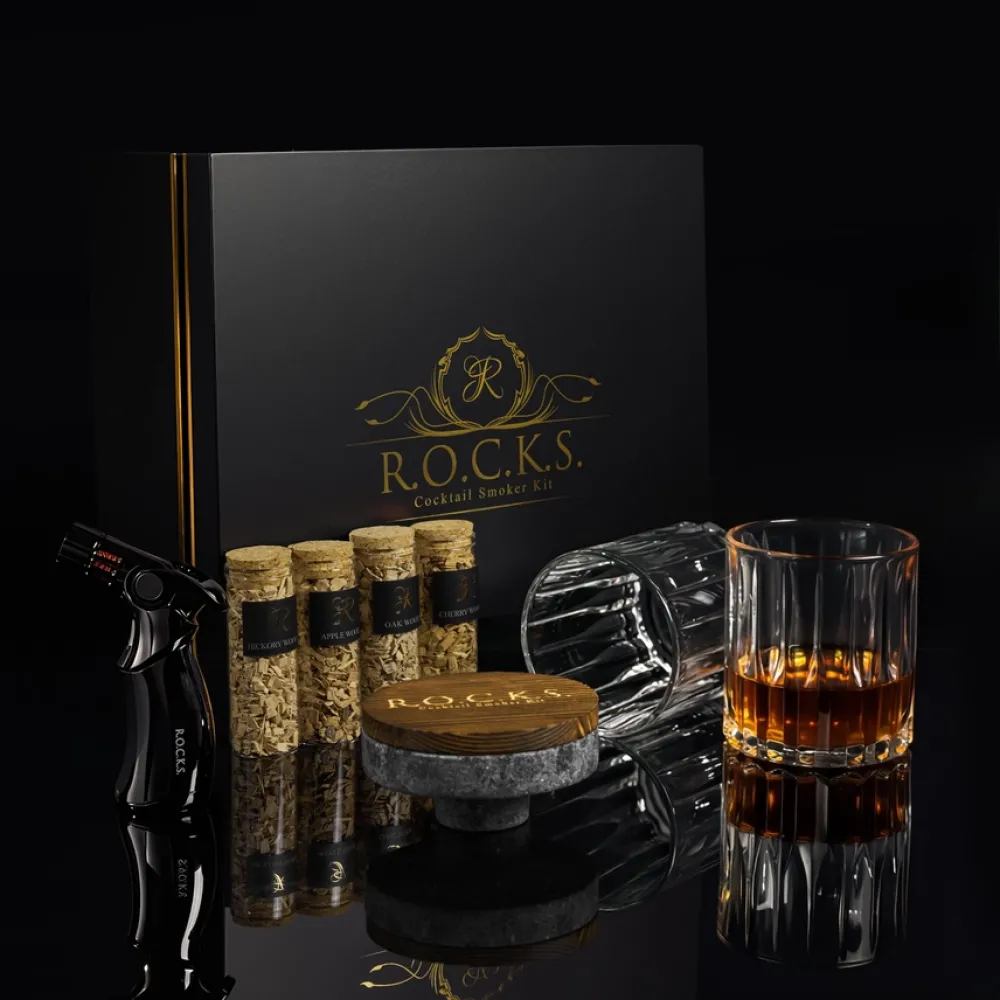 Beautifully presented in our signature gift box, it’s the perfect home bar kit for cocktail enthusiasts. Crafted from natural granite stone, our elegant cocktail smoker kit infuses your favorite spirits with rich aromatic smoke while preserving their true character. Elevate your cocktail ritual with ROCKS.
